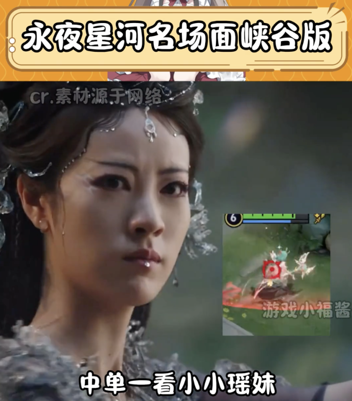 比如,《永夜星河》大火的时候,各大平台上也诞生了不少把剧中角色和王者场景相结合的二创作品,真正印证了那句“万物皆可王者荣耀”。